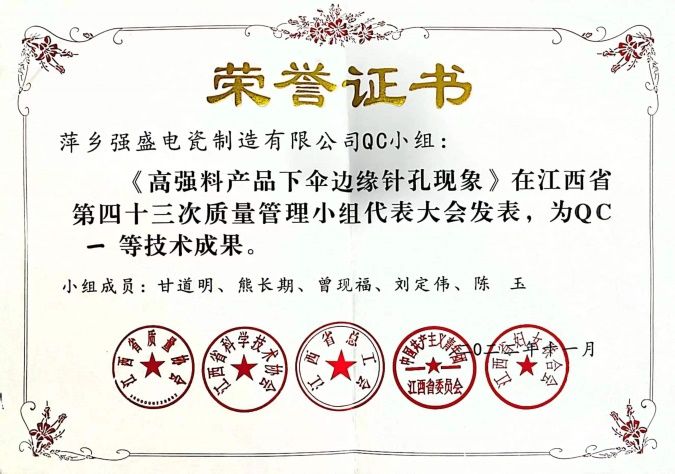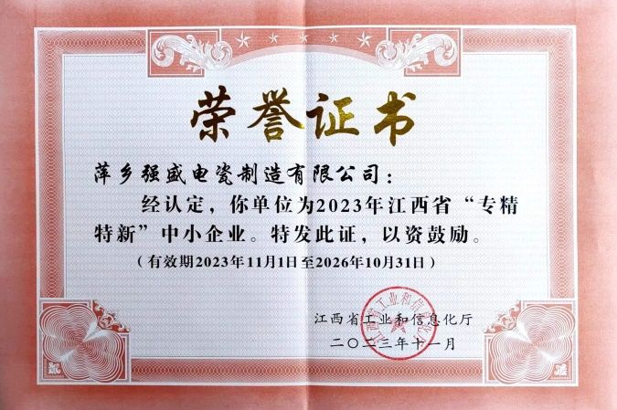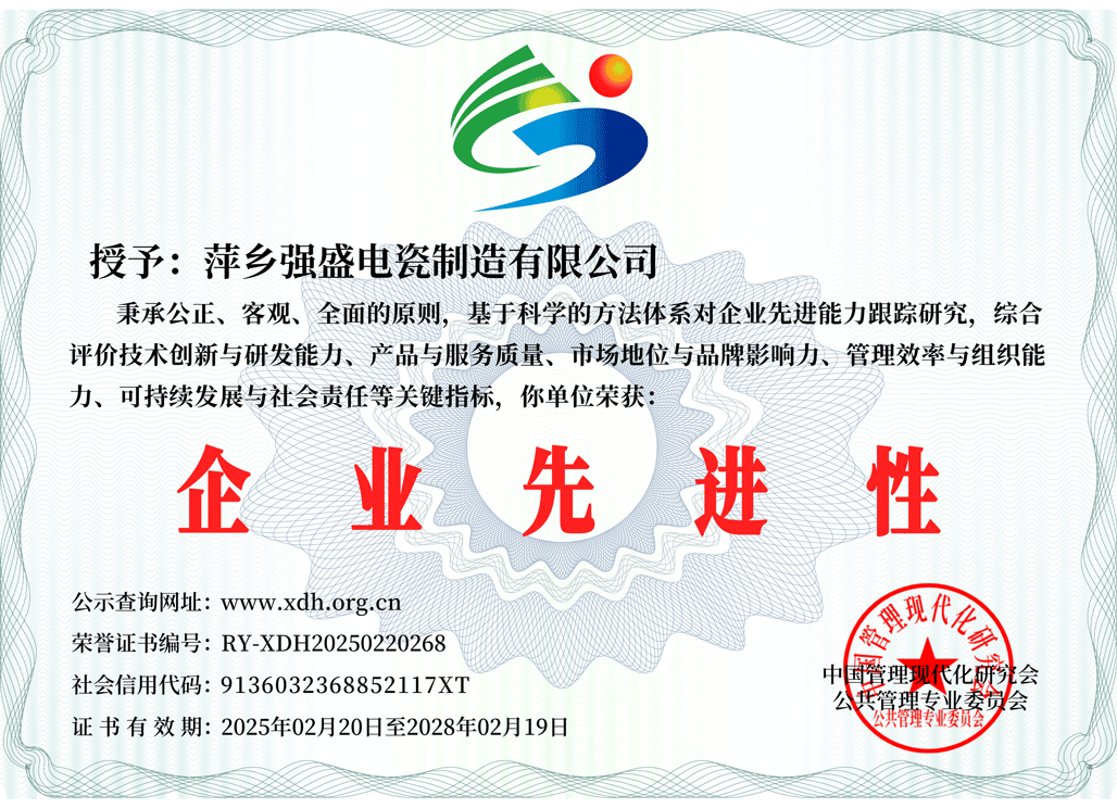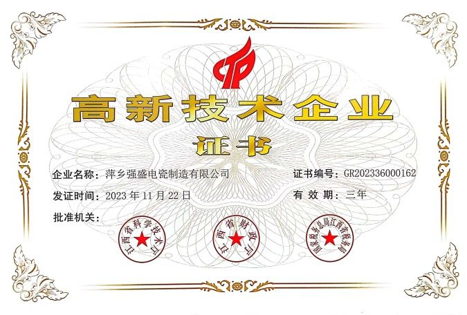 萍鄉(xiāng)強盛電瓷制造有限公司坐落于美麗的江西省萍鄉(xiāng)市蘆溪縣,成立于2009年,是一家集瓷絕緣子研發(fā)、設計、生產(chǎn)、銷售、服務一體的現(xiàn)代化生產(chǎn)企業(yè)。公司成立至今,一直專注于電力電網(wǎng)建設與發(fā)展,到目前為止公司獲得各種發(fā)明專利29余項。